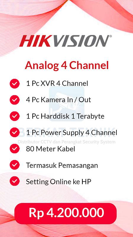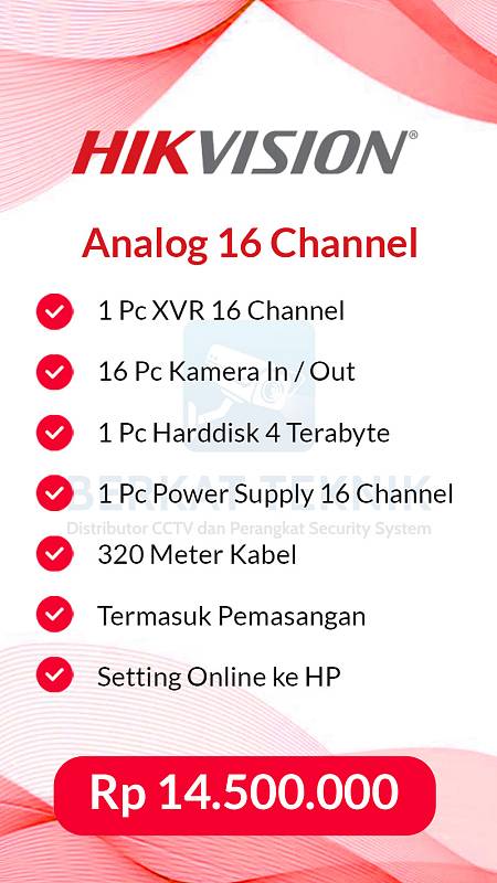 Berkat Teknik menghadirkan Paket CCTV HIKVISION merek kelas dunia yang telah terbukti handal dan digunakan di berbagai proyek besar, mulai dari perkantoran, kawasan industri, hingga instansi pemerintahan. Meskipun kualitasnya berstandar internasional, kami menghadirkannya dengan harga yang sangat terjangkau.